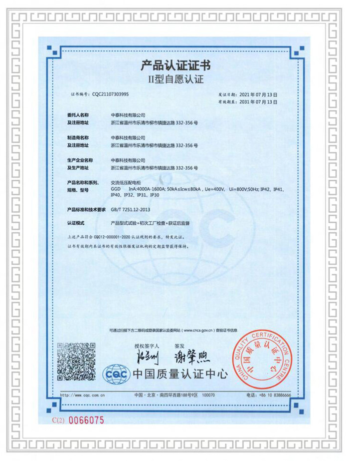 **质量认证产品认证证书