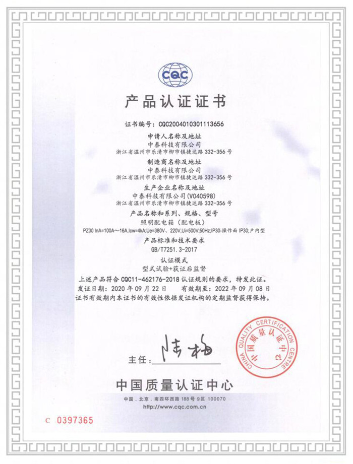 **质量认证产品认证证书